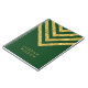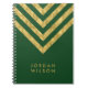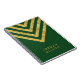Elegant notebook featuring faux gold chevron pattern against a green background cover that you can personalize with your name. Great for school and office.