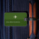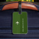 An elegant and personalized design with image of a white airplane on a 2-tone green (editable color) background, to identify your belongings