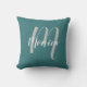 A Personalized Monogram and Name pillow featuring personalized name in a modern script font style and monogram in modern script font style. Perfect as a holiday gift, family reunion favors, housewarming gift, thank you gift for bridesmaids, or any of your home decor needs.