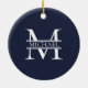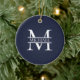 Personalized Elegant Navy Blue Monogram and Name Ceramic Ornament