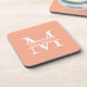 Personalized Elegant Peach Monogram and Name Beverage Coaster