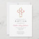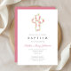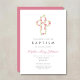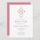 Personalized Elegant Pink Floral Cross Baptism Invitation