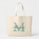 Personalized elegant teal monogram big jumbo Large Tote Bag. Classy template design with script typography and vintage initial letter. Custom canvas totes.