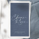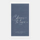 Celebrate love with this elegant wedding paper guest towel featuring the phrase "Cheers to Love" in a stylish script font. The deep blue background with white lettering creates a timeless and sophisticated look. Personalized with the couple’s names and their special date, this guest towel adds a romantic and refined touch to any wedding reception, engagement party, or anniversary celebration. Perfect for adding elegance to your event while offering a practical and stylish detail for your guests.