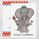 A sweet illustration of an elephant and baby. The baby is holding up a cupcake covered in sprinkles and they are both wearing crowns.