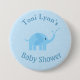 Customize this cute button with the name the mom to be. Fun button has a elephant with blue hearts coming from the trunk. Great for shower attendees or as a shower favor.