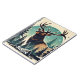 Stylized depiction of an elk with antlers amidst pine trees under starry backdrop, exuding wilderness charm.