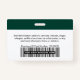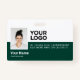 Easily personalize this Custom Horizontal Employee Name Badge with Photo, Scan Bar Code or Qr code and business logo. A simple business design in dark green and white colors fully customizable in front and back sizes, sans-serif basic and modern fonts and a professional and clear look. These standard security id name tags badges are avaiable with lanyard, metal clip or with retractable. You can personalize your id badge cards choosing any background color and any font style with Graphic Design editor by clicking on customize further. No minimum order.