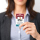 This Personalized Employee Photo ID Badge features the ability to pick your own colors on this design that is currently in Blue-GreenTeal, White, and Cranberry Red with the employee photo framed in black as well as customizable text with the name of your business, the employee's name, title, ID number, the department or area where the employee works, the the badge date of issue and expiration date, and (on the back) an address for the return of lost badges as well as a phone number to call. If you want to change the colors on this badge, click on "customize further" in the "personalize" menu. Next you should see all the layers and within them some layers called "rectangle." (If the layers aren't already showing click on "Layers" at the bottom of the left column to see them.) When you choose a rectangle you'll see it highlighted in the picture of the product. On the right hand column you will see "fill" and "border" and when you click on those you will see a selection of colors to choose from within that same right hand column. The border is set to zero by default. If you want to create a border on a rectangle, look for "border thickness" and change the size. Have fun. Please see more custom employee badges as well as personalized gifts and decor for home and office in our store at zazzle.com/diydecor.