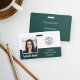 Personalize these horizontal badges with an employee photo and name, along with a template field for additional custom text for employee ID number, role or title, location, or other key data. Add your logo at the top. Additional custom text field located on the back for return information or other details.