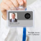 Professional elegant gray horizontal ID badge template with employee photo, custom logo, text, and image (barcode or QR code). +++++++++++++ Easy to personalize on both sides with all your details. +++++++++++++ Please note that the background colors are changeable. You can edit them after selecting CUSTOMIZE this design option.