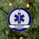 Personalize this EMS Christmas ornament by adding your Emergency Rescue department name. Includes the EMS symbol in blue on a white background. Order an EMS Christmas ornament for everyone on the squad and decorate the Emergency department Christmas tree. Great for members of volunteer rescue squads for the community Christmas tree.