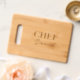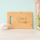 Personalized etched bamboo cutting board gift. Elegant present for kitchen chef, cook, friend, mom, dad, colleague etc. Classy typography for custom name and title. Unique cooking gifts for him or her.