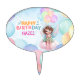 Top off your magical celebration with this gorgeous, personalized fairy cake topper, featuring a sweet watercolour fairy sitting on a soft cloud, surrounded by floating pink and blue balloons. Customize with the birthday girl's name to create a whimsical and unforgettable cake moment!