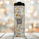 Embrace the warmth and beauty of autumn with this personalized tumbler adorned with a charming pattern of fall foliage. The delicate leaves, vibrant berries, and intricate branches create a cozy and inviting scene. Make it truly yours by adding your initial in a stylish monogram. This durable stainless steel tumbler keeps drinks hot or cold for hours, making it a perfect companion for crisp autumn days.