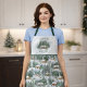 This personalized family cabin apron makes a great gift or use for your own holiday baking. The apron features the family name and year established framing a rustic watercolor scene with a cabin nestled in the woods at the top, and a coordinating pattern with cabins nestled in the snowy pine forest on the bottom.