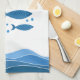 Personalized Family Modern Blue Coastal Fish Kitchen Towel