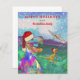 Add your personalized family name to this fu dinosaur christmas holiday card. Time for some Christmas dinosaur fun with this snow scene and a scary colorful T rex in a Santa hat with a velociraptor and a flying pterodactyl in Santa hats. Add your family name and wish your friends a fun prehistoric dinosaur happy holidays. Better make sure you’re not naughty but nice or these scary dinosaurs will be after you. T Rex, velociraptor and pterodactyl festive dinosaurs, the perfect way to bring fun and laughter to your family and friends in the festive holiday season. Original artwork created by artist Catherine Sweetman