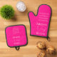 Personalized Family Names Hot Pink Oven Mitt & Pot Holder Set