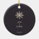 Celebrate the joy and togetherness of the holiday season with our Personalized Family Photo Christmas Ornament. The front showcases a cherished family photo framed by an elegant snowflake design, while the family name adds a personal touch. On the back, "Joy + Love" captures the heartwarming spirit of your family, along with the memorable date. This customizable ornament is a perfect holiday gift, creating lasting memories for your loved ones. Crafted with attention to detail, it's a beautiful addition to your tree and a keepsake to be treasured for years to come. Share the warmth of the season with a unique and heartfelt ornament that celebrates your family's holiday joy.