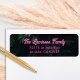 Add some neon vibes to your event with these personalized return address party invitation labels. The design features a tropical palm backdrop with bright pink script text. Enter the Zazzle Design Tool for additional customization.