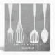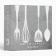 This is beautiful personalized recipe book full of favorite dishes, organized into one beautiful binder. Personalized with your text on the front, and featuring an original illustration of a white fork, knife, and spoon surrounded by a curly swirly border on a burlap looking background. Kitchen tools Recipe binder would be perfect for anything. You can easily change text color, font, size and position by clicking the customize button.