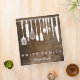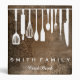 This is beautiful personalized recipe book full of favorite dishes, organized into one beautiful binder. Personalized with your text on the front, and featuring an original illustration of a white fork, knife, and spoon surrounded by a curly swirly border on a burlap looking background. Kitchen tools Recipe binder would be perfect for anything. You can easily change text color, font, size and position by clicking the customize button.