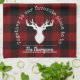 The product design features a silhouette of a deer on a classic red and black buffalo plaid pattern. Combined with your own personalized text, this composition makes a farmhouse country-style, modern, and unique kitchen towel for Thanksgiving, Christmas holiday, family reunion, or any other special gatherings!