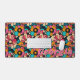 Retro-style floral pattern with bold color flowers in pinks, oranges and turquoise is a fun background on your desk mat. Personalize with your name in pink with a bold, retro 70's style typeface.