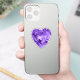 Faux shiny amethyst purple heart shape gemstone on a custom cut sticker.