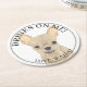 Personalized Fawn Long Haired Chihuahua Wedding Round Paper Coaster