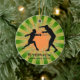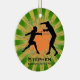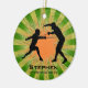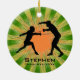 Fencing Personalized Ornament Christmas 20XX. Fencers pose against a green and orange starburst background. All text customizable, front and back!