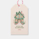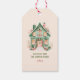 Give the gift of cozy holiday magic with our personalized festive gift tag. This adorable design features a charming winter cottage. Add a personal touch by including your names and year.