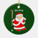 Field hockey Christmas collectible ornament featuring Mrs. Claus with a candy-cane hockey stick. Edit text to add the year and the name of your favorite field hockey player, coach or team sports fan.