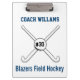Personalized Field Hockey Team Name Jersey Number Clipboard