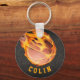 This flaming basketball is great for any hot shot baller! Yes, I learned that term from listening to a bunch of boys talk about there three-pointers and free throws. Whether it on the court or off, your ready to look like a player while you go shoot some hoops. And, personalize this design as well, with a basketball orange varsity font.