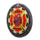 The perfect firefighter inspired dartboard for the firefighter or firefighting fan of the family. Features a custom fire department badge with fully customizable text. Simply change any of the texts to your city, business, or family name. You can also customize the Fire Department text at top to any text desired as well. Enjoy! *Thank you for your service if you've served in any capacity!