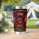 Stainless steel tumbler with custom firefighter emblem and name personalization, ideal for fire department members or enthusiasts, showcasing a bold red and black badge design for everyday use.