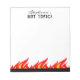 Personalized red fire flames hot topic writing memo notepads fr home or work. Custom note pads with flames and name. Personalized memo pad design for home, club, kitchen, school or office. School / office supplies for men, women and kids. Customizable background color. Cute gift idea for dad, teacher, chef, restaurant owner, mom, friend, co worker, boss, colleague, etc.