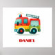 Add a touch of excitement to your child's room with this personalized fire truck poster! Featuring a bright and cheerful illustration of a fire truck, this poster can be customized with your boy's name for a special, personal touch. Perfect for young fire truck enthusiasts, it makes an excellent addition to bedrooms, playrooms, or as a thoughtful gift.
