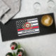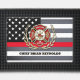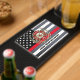 Fun firefighter's personalized bar mat. Maltese cross with your city name fire department, your rank and name over the classic thin red line firefighter's flag.