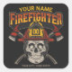 Personalized Fireman Skull Helmet Axe Firefighter Square Sticker