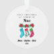Make your Christmas decor special with this cute personalized first Christmas as family of three ornaments.