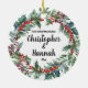 Custom First Christmas Engaged Ornament, Personalized Couples Gift for bride, engagement announcement mr and mrs, will you marry me girlfriend, boyfriend fiance fiancee present decor, wedding just married newly wed, our them groom keepsake personalised, son daughter year date decoration, winter holiday party December from, 2024 2025 2026 tree bauble, holly berries pine fir branches, foliage botanical modern rustic farmhouse barn, white green red, elegant greenery watercolor, couple vintage classic script