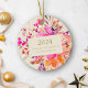 Celebrate your first Christmas as a married couple with this stunning bright pink watercolor floral ornament. Personalized with your names and wedding year, this elegant ceramic keepsake captures the joy of your special day and adds a touch of love to your holiday decor. The vibrant floral design and modern typography make it a beautiful reminder of your first holiday season together. A perfect gift for newlyweds.