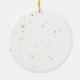 Lightweight, smooth, pure white ornament with nice sheen. Perfect size to be seen from across the room ... and to attract closer inspection! Price was great for ordering enough for the whole family! Clear, bold black design just as requested. Matches the order exactly. Just so nice!