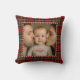 Personalized First Christmas Photo Tartan Throw Pillow