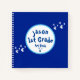 Personalized first grade fish school art book spiral notebook. Name, first grade and book title fields with school of fish within a round boarder in aqua, blue and white. School of fish in white on a blue background.
