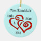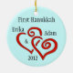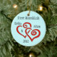 Entwined red hearts on a blue background and personalized names & date. Change Background color by selecting custimze, edit and background.