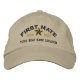 A personalized nautical star first mate embroidery design on a fine casual embroidered baseball cap. A one of a kind fashion statement sure to make an impression on, or off the boat.